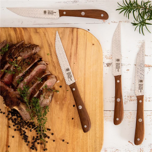 Renowned for their precision and durability, German steel knives are a go-to choice for professional chefs and home cooks alike. At Baccarat, we offer a wide selection of these renowned knives, from classic chef's knives to paring knives suited to your cooking needs.. Made only from the highest quality materials, our German steel knives are designed to last a lifetime in your kitchen. Indulge in the superior craftsmanship of German steel knives, where form meets function in a symphony of precision and power.